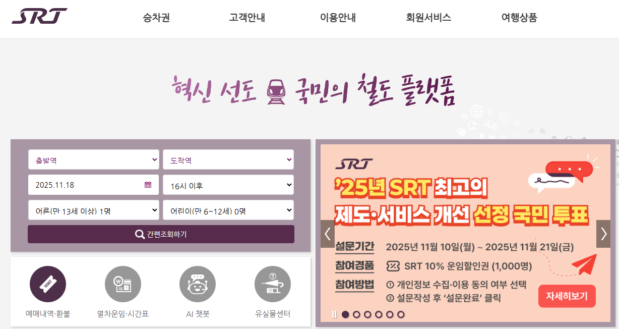 고속철도 이용이 일상화된 요즘, 빠르고 편리한 예매는 더 이상 선택이 아닌 필수가 되었습니다. 특히 수서고속철도(SRT)는 합리적인 가격과 빠른 노선으로 많은 이용자들의 선택을 받고 있습니다. 이번 글에서는 SRT 홈페이지 이용 방법과 함께, 모바일로 간편하게 예매할 수 있는 SRT 공식 앱에 대해서도 안내드리겠습니다.