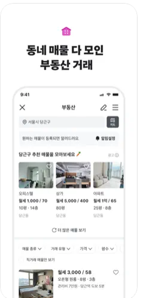 중고거래 외에도 부동산 매물, 구인구직, 동네 소식 공유 등 다양한 서비스를 제공합니다. 필요한 정보를 한곳에서 확인할 수 있다는 점이 당근마켓 앱의 큰 강점입니다.
