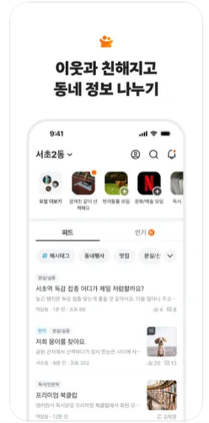 당신 근처의 동네 커뮤니티. 중고 거래부터 동네 정보까지, 이웃과 함께해요. 가깝고 따뜻한 당신의 근처를 만들어요.