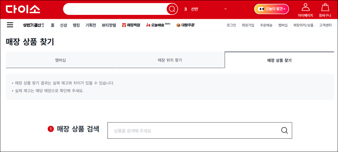 다이소 재고조회 사이트를 통해 오프라인 매장 재고를 확인하는 과정은 다음과 같습니다.