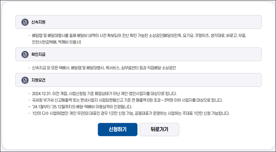 소상공인 배달 택배비 지원은 신청 방식에 따라 '신속지급'과 '확인지급' 두 가지로 구분됩니다.